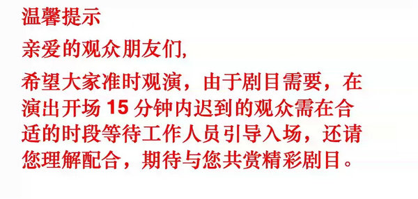 2.凡演出票类商品,开票时间一般为演出前二到四周,正式开票后如有特殊情况客服会第一时间电话联系您,请保持电话畅通。