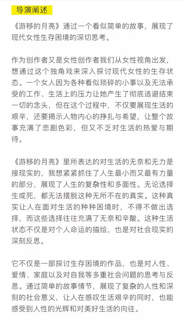 《游移的月亮》|第三届国际独角戏剧节·邀演剧目用户评论