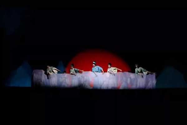 柔美之外,《西施》也展现了力量感十足的“船拳舞”。船拳是春秋时期吴越地区的一门小拳种。该剧化拳为舞,于方寸之间,尽显乾坤,将三千越甲的壮志情仇表现的淋漓尽致。