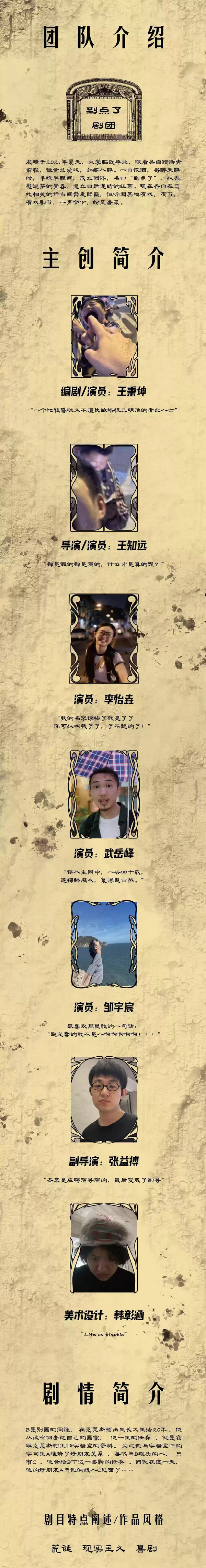 发端于2021年夏天,大学临近毕业,眼看各自蹬脚奔前程,但金兰爱戏,如痴入醉。一日饮酒,将醉未醉时,半睡半醒间,成立团体,名曰“到点了”,以告慰迷茫的青春,建立日后连结的纽带。现在各自在与此相关的行当间奔走颠簸,但听闻某地有戏,有节,有戏剧节,一声令下,纷至沓来。