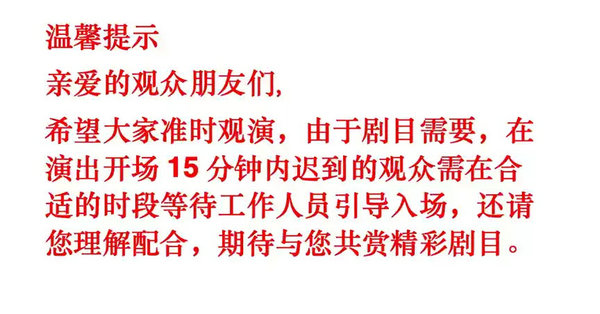 2.凡演出票类商品,开票时间一般为演出前二到四周,正式开票后如有特殊情况客服会第一时间电话联系您,请保持电话畅通。