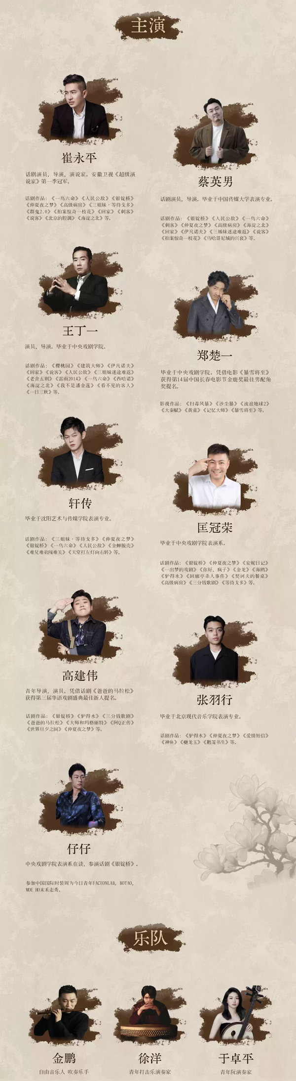 主要演员:崔永平、蔡英男、王丁一、郑楚一、轩传、匡冠荣、高建伟、张羽行、仔仔