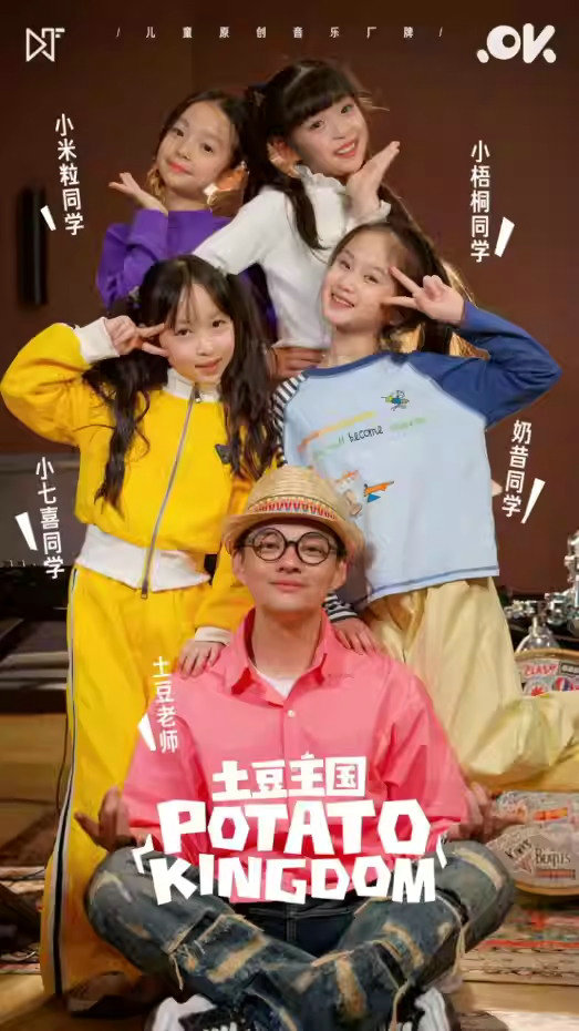土豆王国POTATO KINGDOM是土豆老师为孩子们创造的音乐乐园,也是国内现象级儿童原创音乐IP,作品全部由土豆老师创作完成,乐队成员人均年龄6-12岁,以轻松活泼的风格、动感十足的演出和高质量的音乐作品深受孩子和家长的喜爱。抖音171万粉丝,全网近500万粉丝。土豆老师创作了原创儿歌近百首,2023年一首《勇气大爆发》火爆出圈,全网播放使用总量达90亿。其他歌曲早以成为全国幼儿园,中小学的必备神曲!