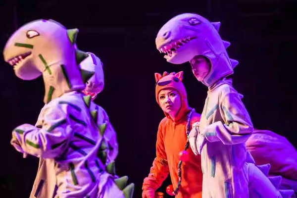 “1……2……3……很好吃!”成了剧中的主角小甲龙“很好吃”的专属游戏,连一向残忍的霸王龙也沉浸在游戏的欢乐中,不知不觉竟然把自己的“食物们”都放走了。“你动了!你输了!”恐龙们憨态可掬的表演,使得现场欢笑不断。 不过剧中两次出现的游戏情节可不仅仅是恐龙们的“自娱自乐”,届时台下的小观众们将会被邀请一起参与其中。和恐龙们一起玩游戏,必将给在场的小观众们带来别样的有趣体验。