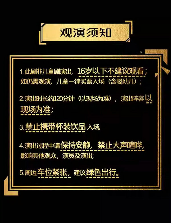 5.票品为有价证券,非普通商品,其背后承载的文化服务具有时效性、稀缺性等特征,不支持退换。如您购票后无法正常观看,还请自行处理。