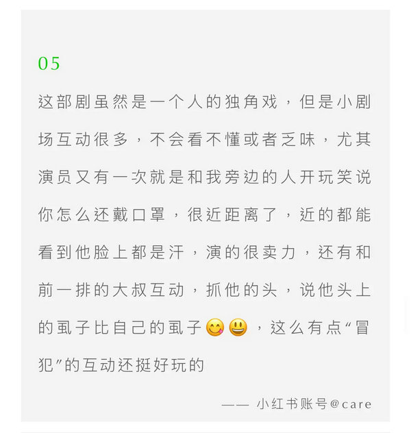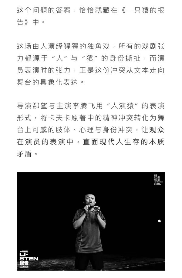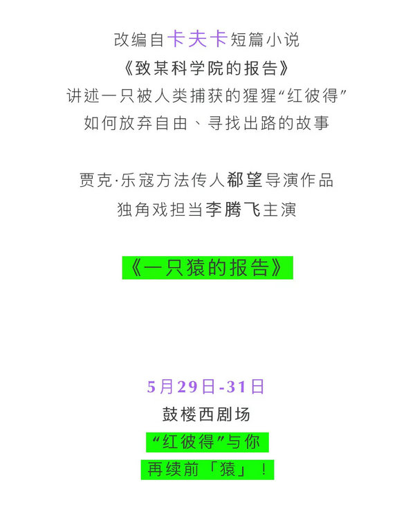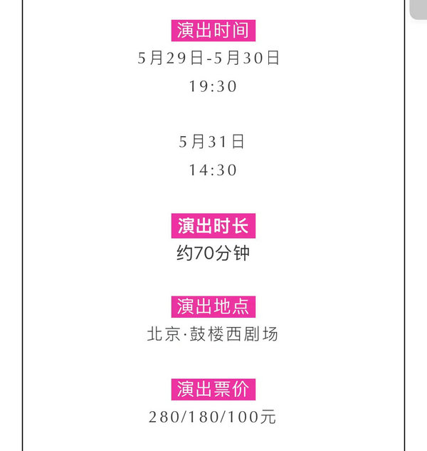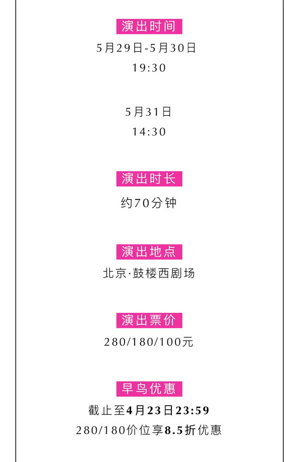 因剧情需要,迟到观众演出开始15分钟后方可入场;演出票当日有效,逾期不作退换;由于地理位置的原因,鼓楼西剧场无法提供车位,请大家绿色出行;为了不影响胡同交通,营造更好的观演环境,请骑共享单车的观众朋友,妥当停置单车(小八道湾胡同与鼓楼西大街交叉口指定停放处),非常感谢您的理解与配合!