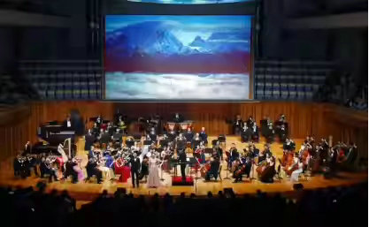 作为第六届中国广播艺术团艺术季的闭幕式演出,《百年光影・时代乐章》大型交响音乐会分为序曲、“鎏金时代”、“烽火岁月”、“燃情年代”、“筑梦启航”、尾声六个篇章,由指挥家郑健执棒,电影导演江平,歌唱家魏金栋,电影演员宋晓英、刘佳、吴海燕、王馥荔,青年歌唱演员马佳、伊扬、岳璐、刘洺君,乐团首席姚亮,携手中国广播电影交响乐团倾情演出。这不仅是一场铭刻光影记忆的视听盛宴,更是对中国电影120年历程的深情回望与时代礼赞。音乐会通过交响乐、声乐、朗诵等融合性艺术形式,向世界讲述中国故事,传播中国声音,展现新时代的文化自信与使命担当。