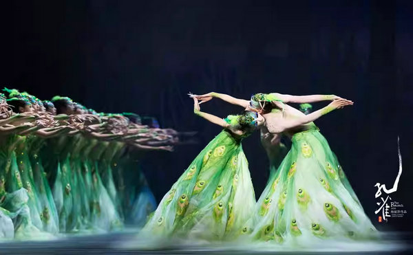 舞剧《孔雀》中还有无数的精彩亮点,例如曾经登上春晚舞台的孔雀爱情双人舞《雀之恋》、自始至终不停旋转的“时间”......这些点点滴滴,就好像孔雀开屏时,那灿若星辰眼睛一样的翎羽一般,等待着你的到来,和我们一起,进入这场关于“孔雀”的奇幻之旅。