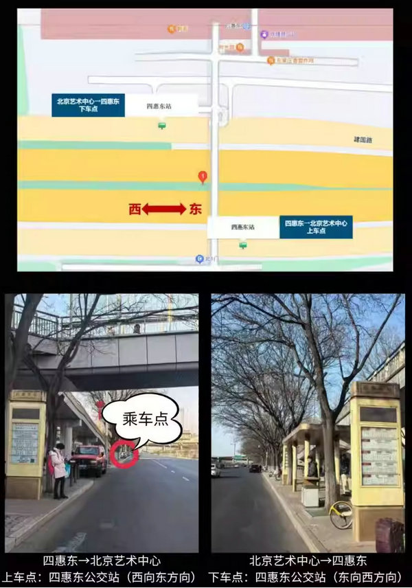 (2)自北京艺术中心发车:演出结束后15分钟内发车完毕,从北京艺术中心西厅上车,直达1号线地铁站四惠东A口,依据现场情况人满即发车。
