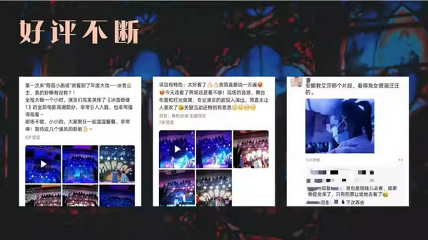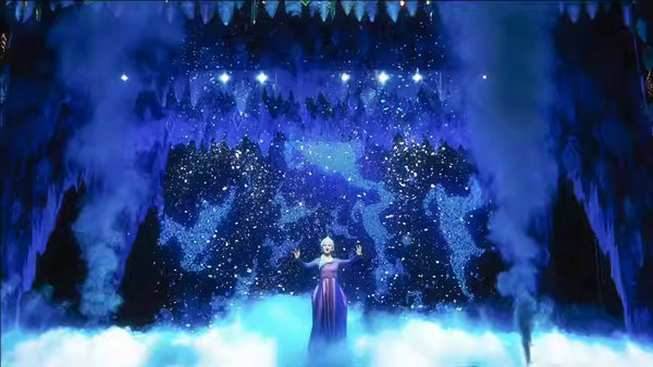 《冰雪女王Ⅱ 艾莎的魔法奇缘》大剧场版本特采用百老汇专用舞台模式,全景展现王宫、森林、雪山等唯美场景。聪明的驯鹿、可爱的雪宝,美丽的艾莎……