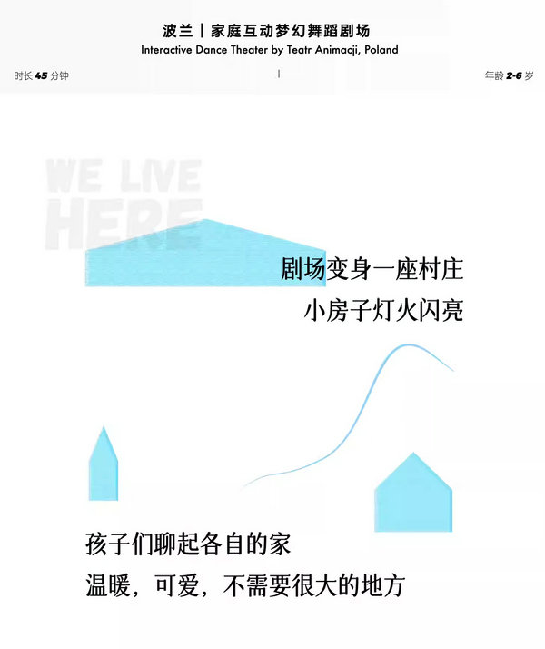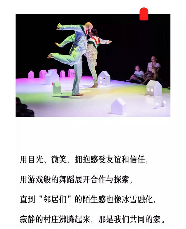 宝宝人生第一场社交盛宴!本场演出将邀请家庭进入“村庄”,在温和的舞蹈和音乐引导下熟悉环境、结识“邻居”,以家庭为单位参与小房子的游戏,创造独特的亲子回忆!