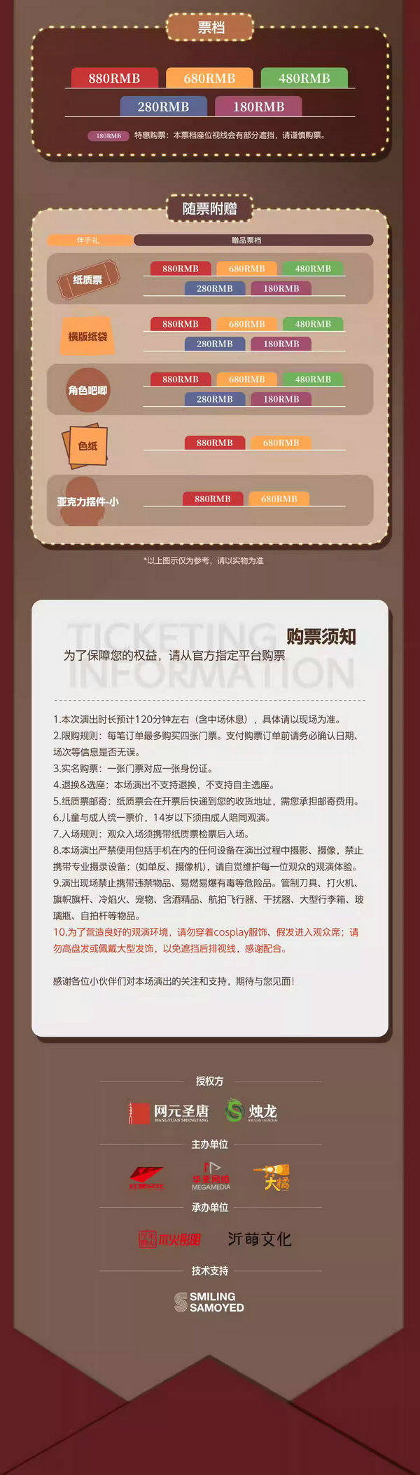 5.票品为有价证券,非普通商品,其背后承载的文化服务具有时效性、稀缺性等特征,不支持退换。如您购票后无法正常观看,还请自行处理。