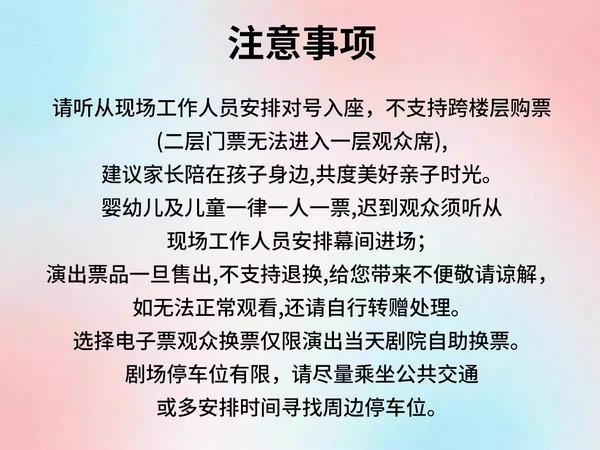 5.票品为有价证券,非普通商品,其背后承载的文化服务具有时效性、稀缺性等特征,不支持退换。如您购票后无法正常观看,还请自行处理。
