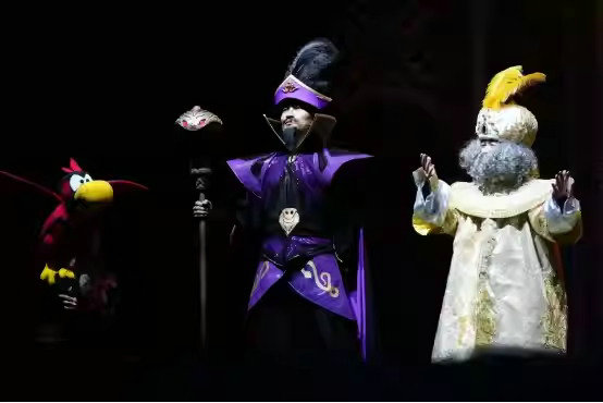 阿拉丁:男,一个正直又善良的男孩,有着如宝石般可贵的品质,在得到神灯召唤出可以实现愿望的精灵后,他却渐渐迷失自己,为掩饰自卑假扮王子,祈求能匹配上心爱的公主,可谎言最终依然被拆穿,阿拉丁重新寻回自我,以正直与勇敢面对危境。