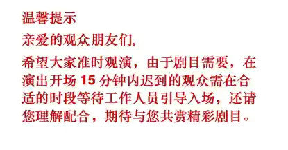 2.凡演出票类商品,开票时间一般为演出前二到四周,正式开票后如有特殊情况客服会第一时间电话联系您,请保持电话畅通。