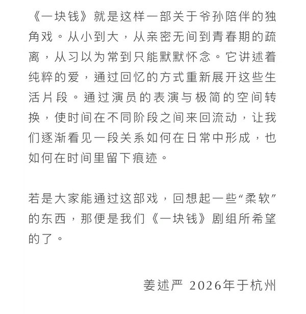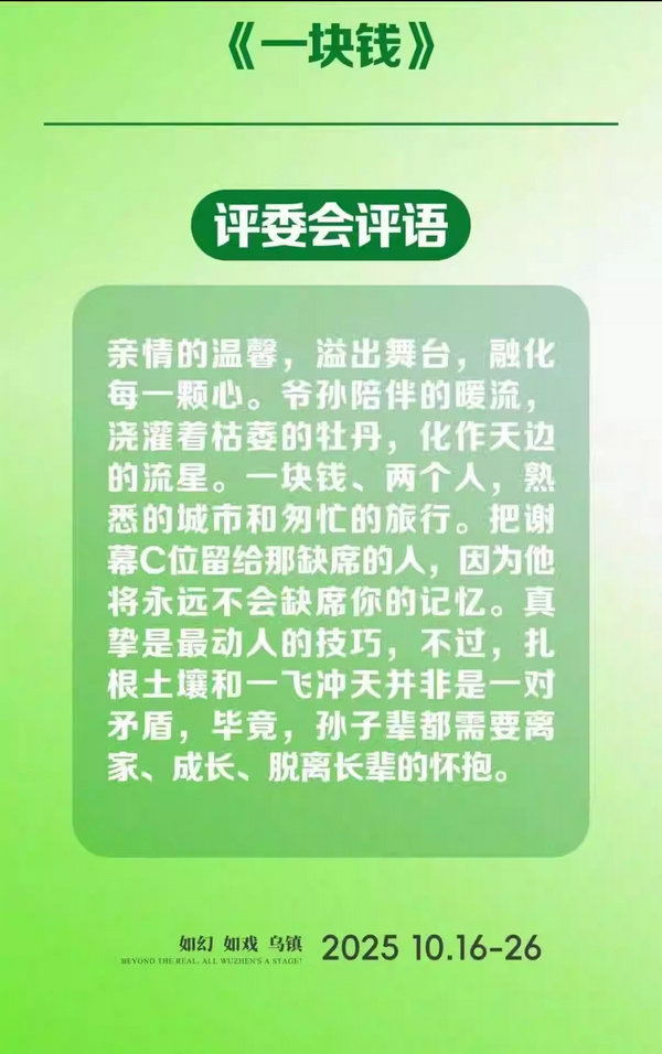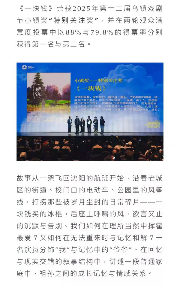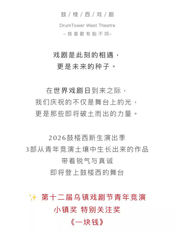 2026鼓楼西·新生演出季 乌镇青年竞演特别关注奖作品《一块钱》